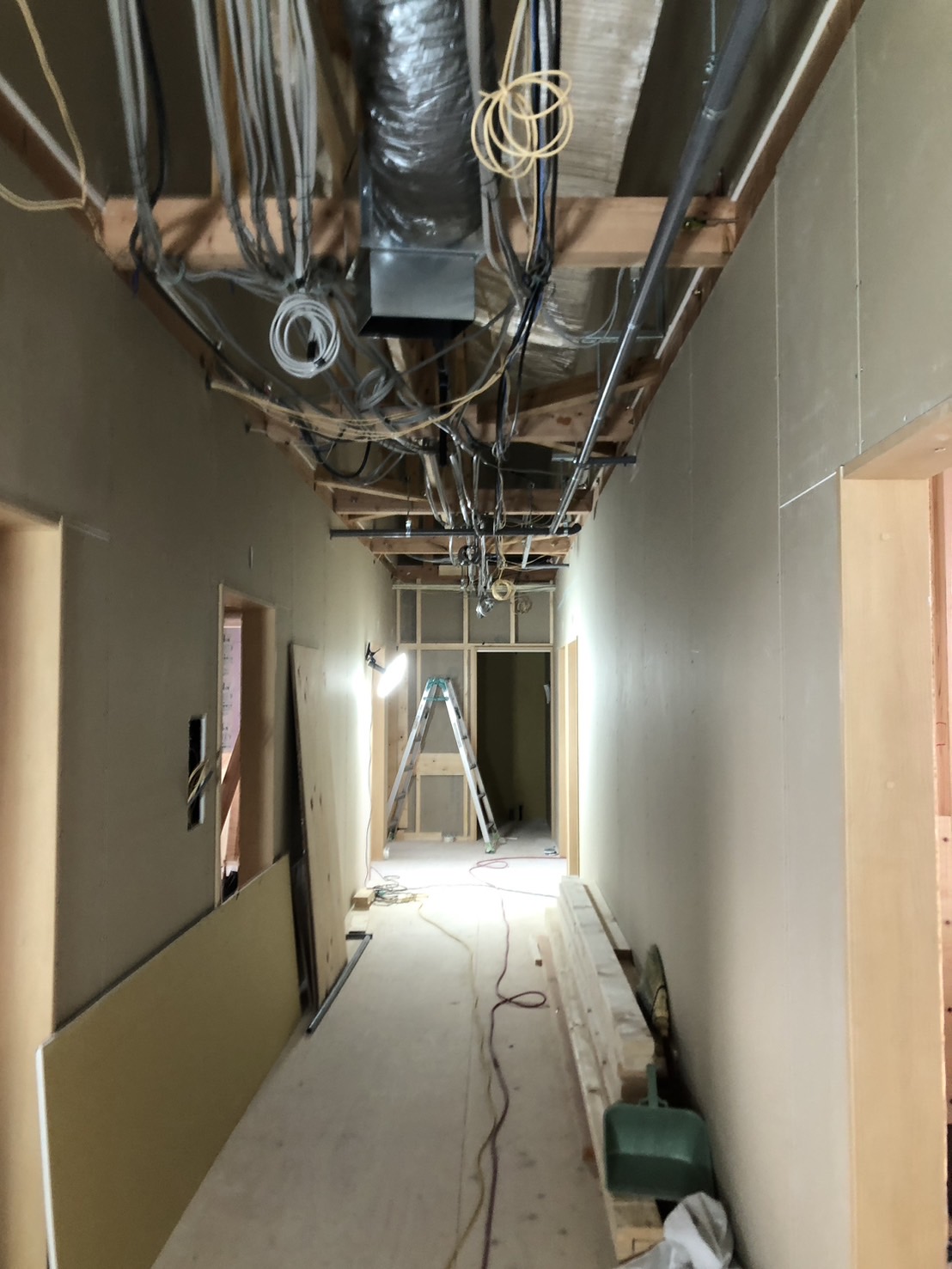 Mグループホームの現場も急ピッチで工事が進んでいます。 10室からなるグループホームですが、食堂には小さいながら中庭があり、そこから十分な光が差し込んできます。 入居者様にとって少しでも癒しの空間になれば幸いです。