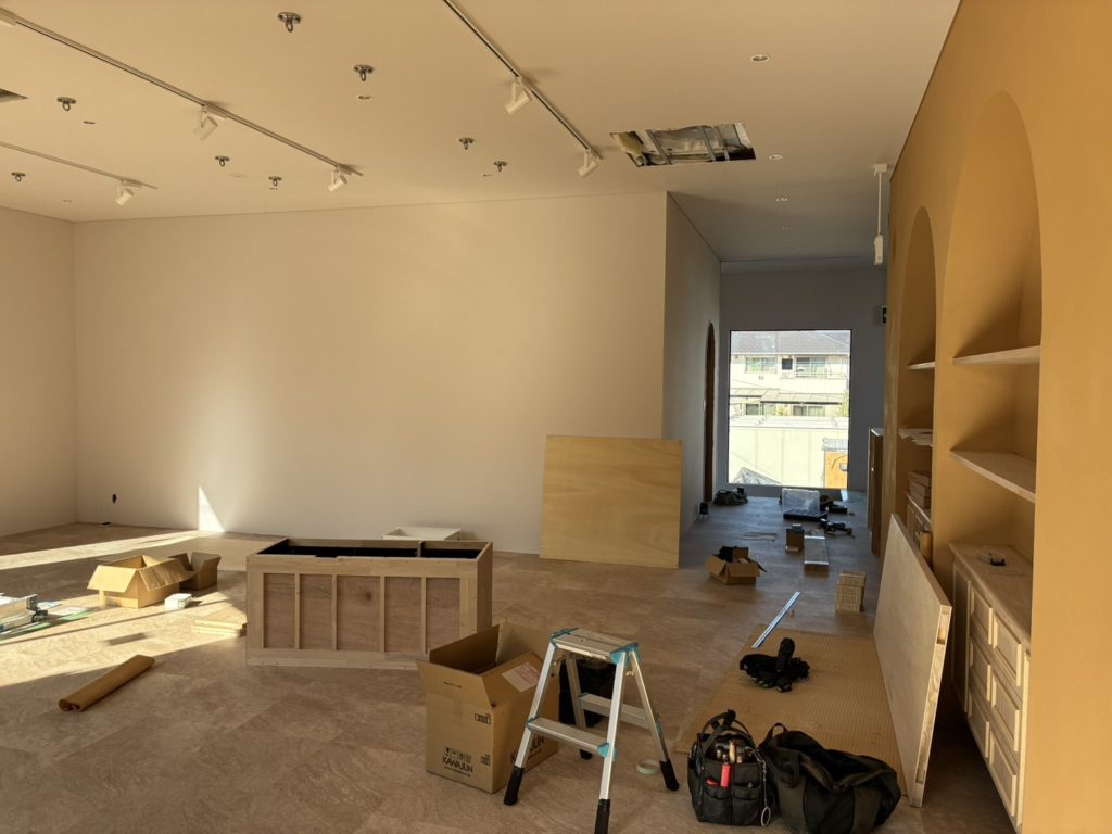 ピラティス貸店舗の現場も工事がだいぶ進みました。 今日は家具の取付や建具のつり込み作業が進んでいました。 このあとは内装工事と同時に外構工事も始まります。