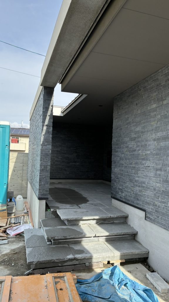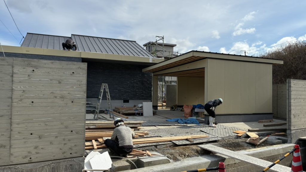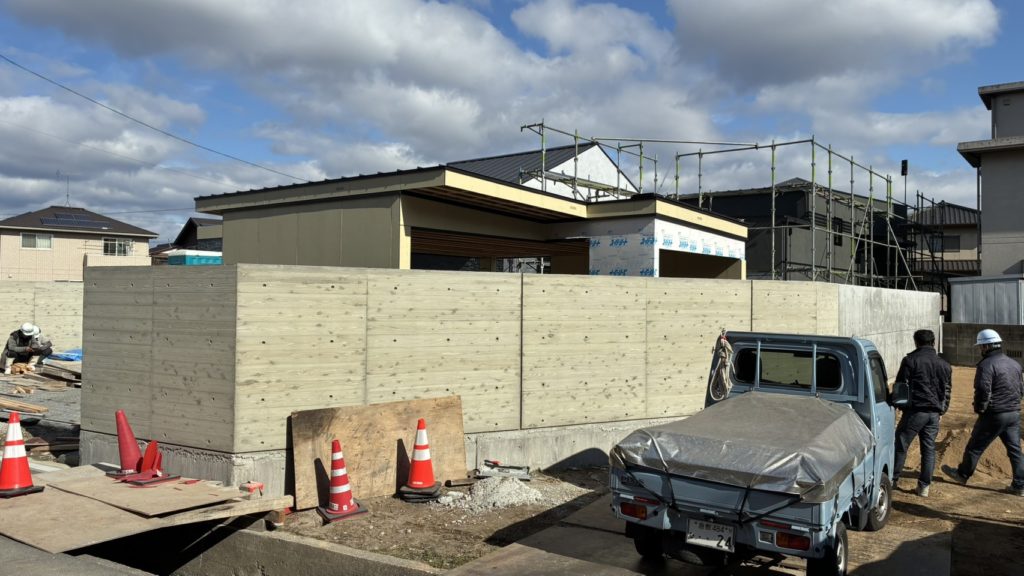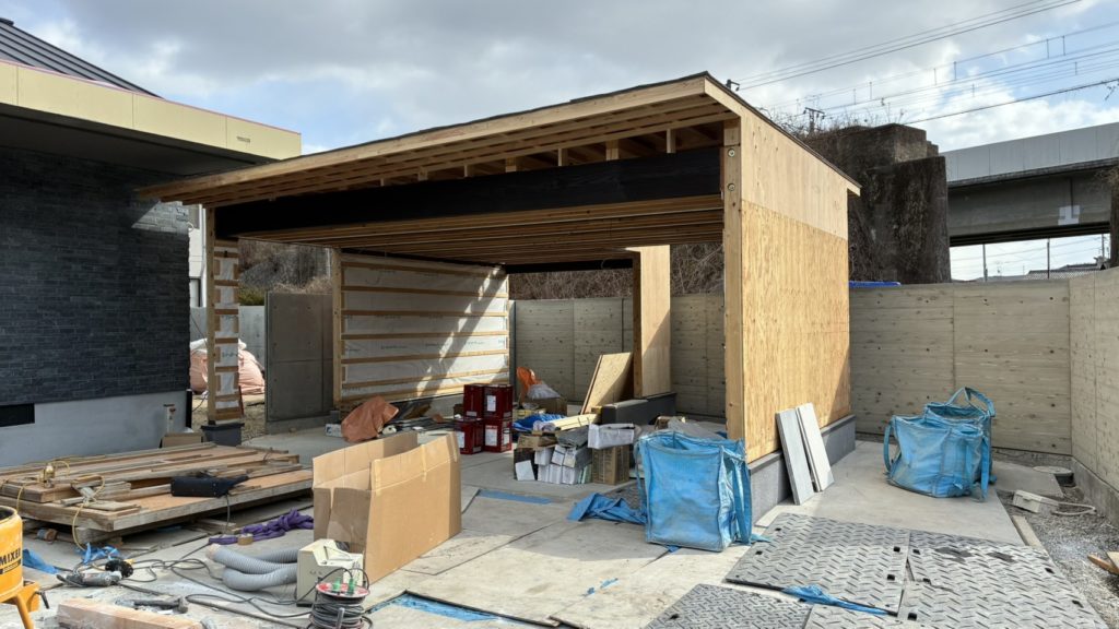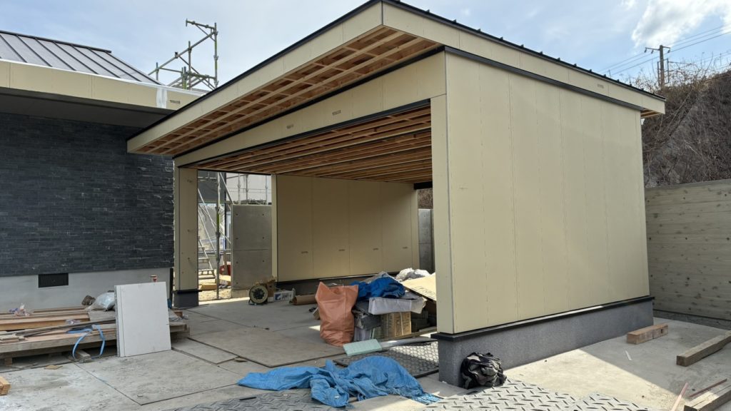 NーHOUSEは外構工事と車庫工事を進めています。 このあとシャッター、門扉を取り付けていきます。