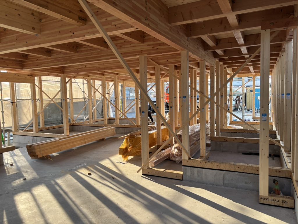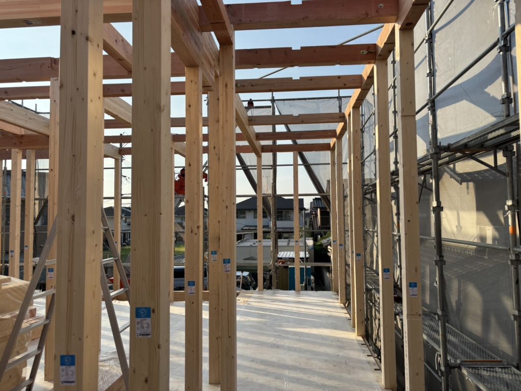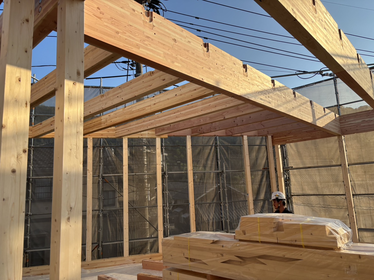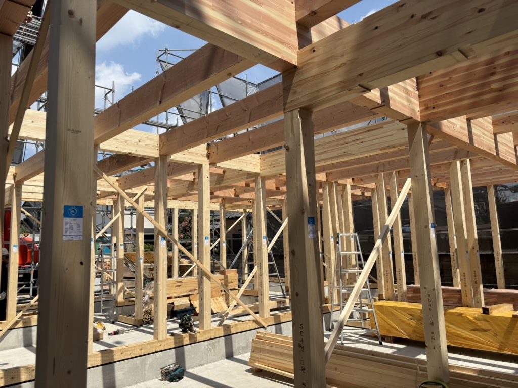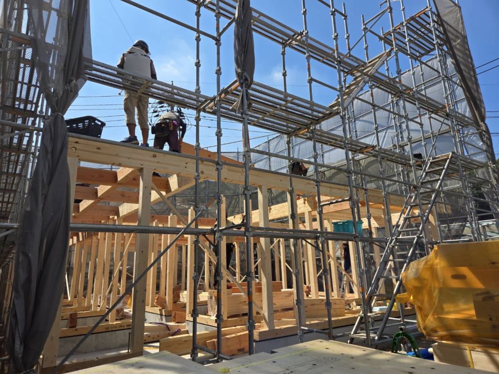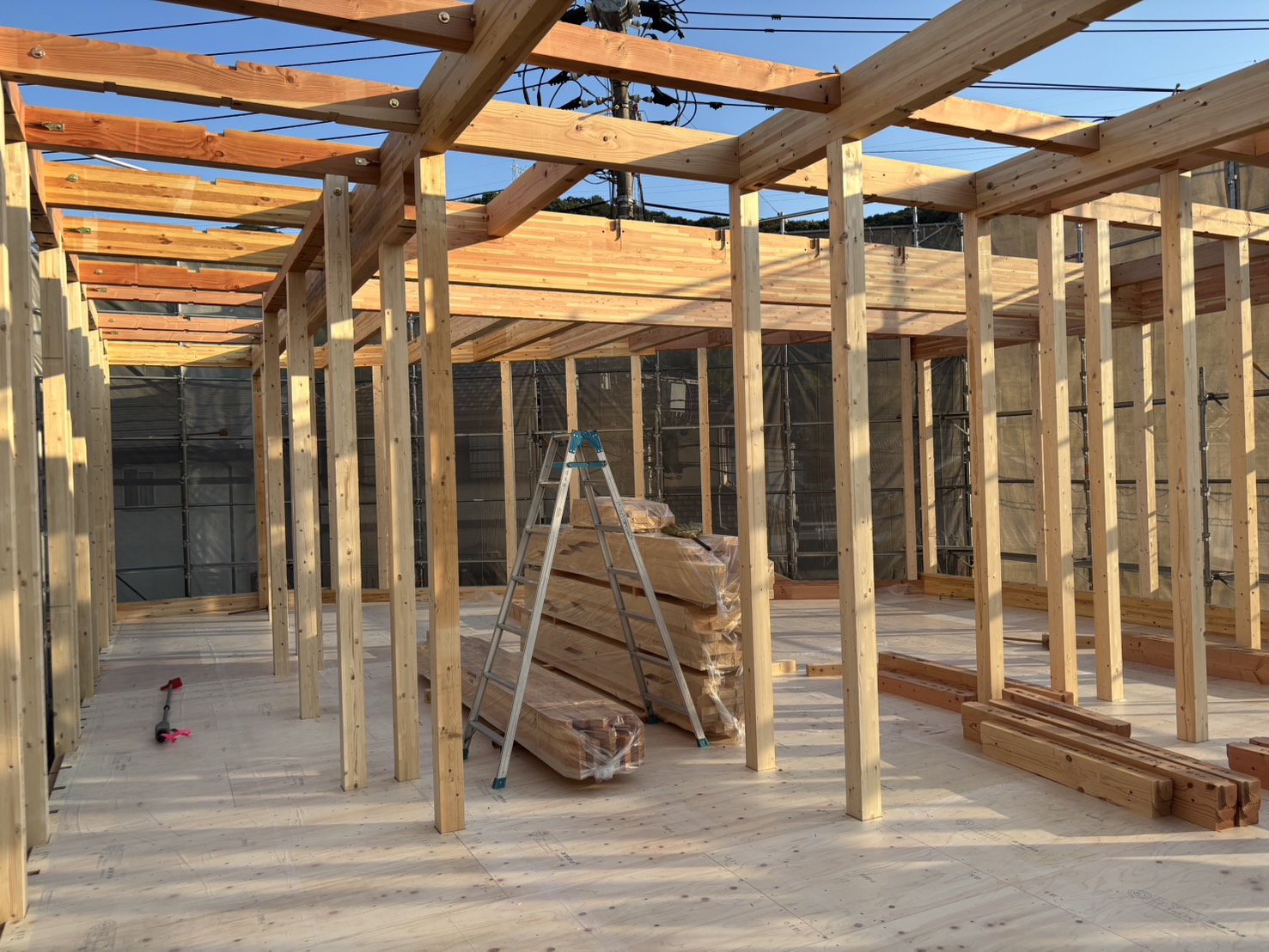 8/29,8/30の両日で無事に2階建ての木造店舗の建て方が完了しました。 暑い中の建て方、大工さんお疲れさまでした💦 建物の工事はこれからが本番です💪