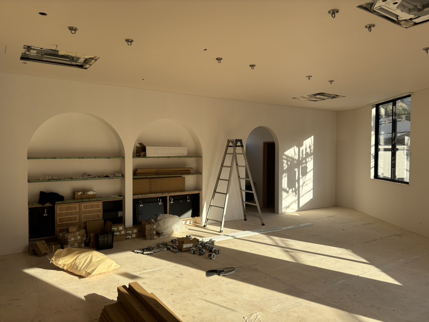 堀南に建設中のピラティス内装工事がほぼ完成しました。これからチェックと手直し工事、そして外構工事を進めていきます。 工事完成まで一か月と少し。事故のないように工事を進めてほしいです。