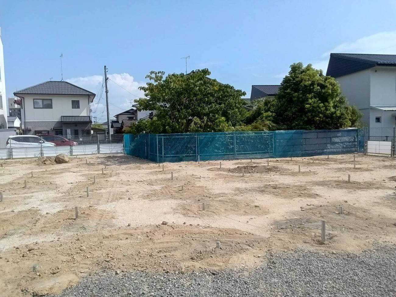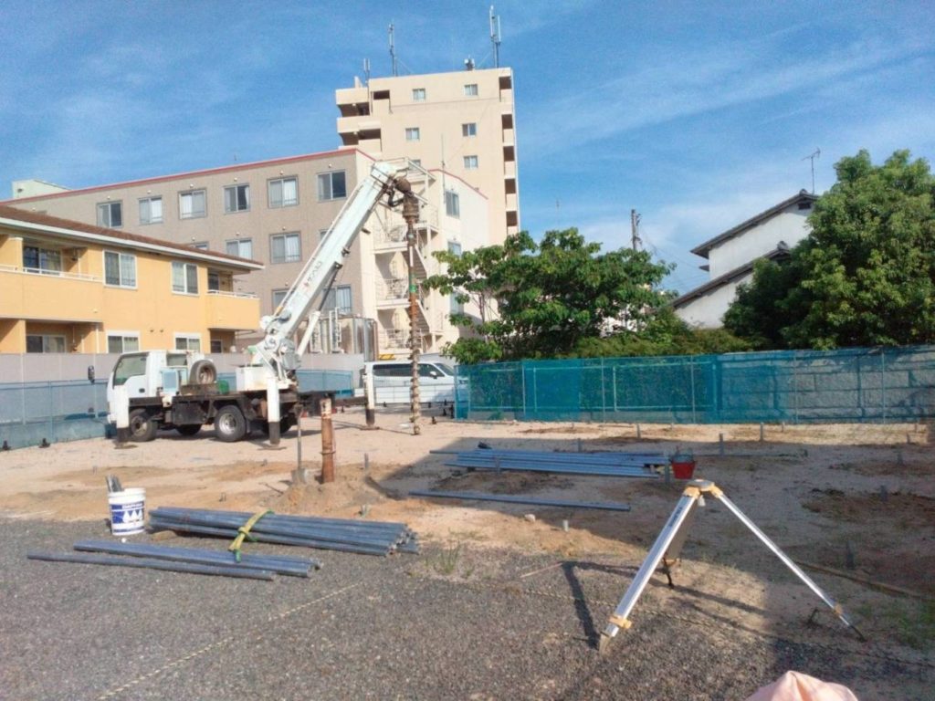 Mグループホームの杭打ち工事が完了しました。 このあとすぐに掘削・基礎工事に入ります。